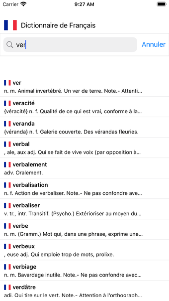 Aplikasi Kamus Prancis adalah alat yang sempurna bagi mereka yang ingin belajar atau meningkatkan kemampuan bahasa Prancis. Dengan lebih darikata, aplikasi ini menyediakan definisi yang tepat untuk setiap kata, menjadikannya sumber daya yang berharga bagi pelajar dan penggemar bahasa. Antarmuka yang sederhana dan responsif memungkinkan pengguna untuk mencari kata dengan cepat dan melihat hasilnya secara real-time, membuat proses belajar menjadi lebih efisien.